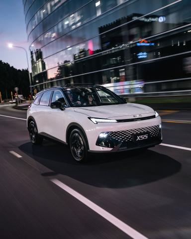 The X55 is powered by a .5-litre turbo petrol engine (138kW/ 305Nm) and features a 10.1-inch Central control screen and 10.25-inch LCD instrument screen, Wireless phone connection and a full black interior and is available in a choice of six exterior colours. The overall look is completed by LED headlights, daytime running lights and taillights and sporty twin tailpipe exhausts.